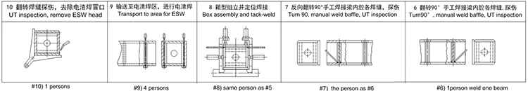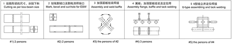 La columna de la caja (columna) está compuesta de un haz en forma de "U" y una placa de cubierta que se ha soldado y formado manchas. Durante el ensamblaje, la pieza de trabajo es estacionaria, la máquina principal se mueve en secciones y el modo de ensamblaje de sujeción se coloca según sea necesario.