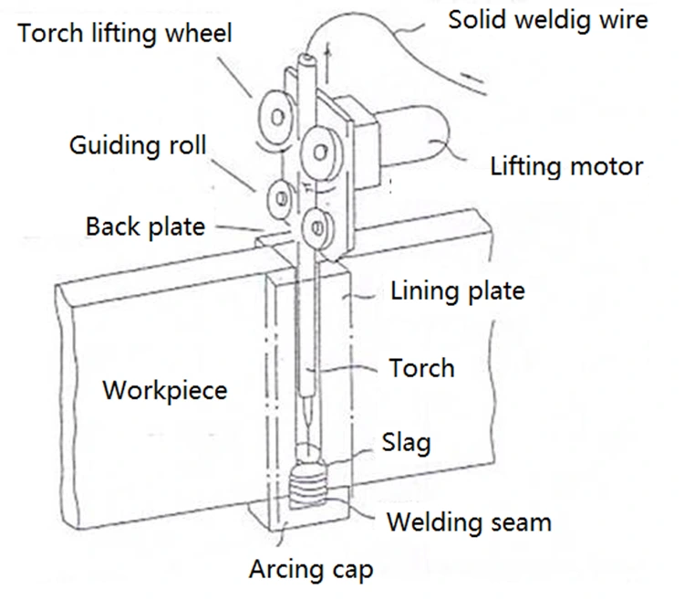 1.1. Se equipan dos conjuntos de sistemas de soldadura de electroestroslag, que pueden soldar sincrónicamente dos soldaduras de la misma placa de partición;