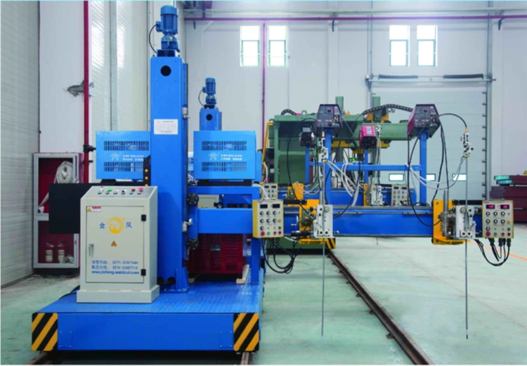 La columna de caja ESW Electroslag Las máquinas de soldadura son un excelente producto lanzado por Jinfeng Welding and Cutting Company para la industria de la estructura de acero. Es un equipo de soldadura especial especialmente diseñado para la columna Weldingbox. Para garantizar suficiente rigidez y resistencia a la torsión durante la fabricación de la columna de la caja, los deflectores (es decir, las placas más rígidas) generalmente están soldadas en el interior de la columna de la caja. Esta máquina es un equipo especial para soldar las soldaduras entre la placa externa de la columna de la caja y los deflectores internos. El equipo tiene las siguientes ventajas: